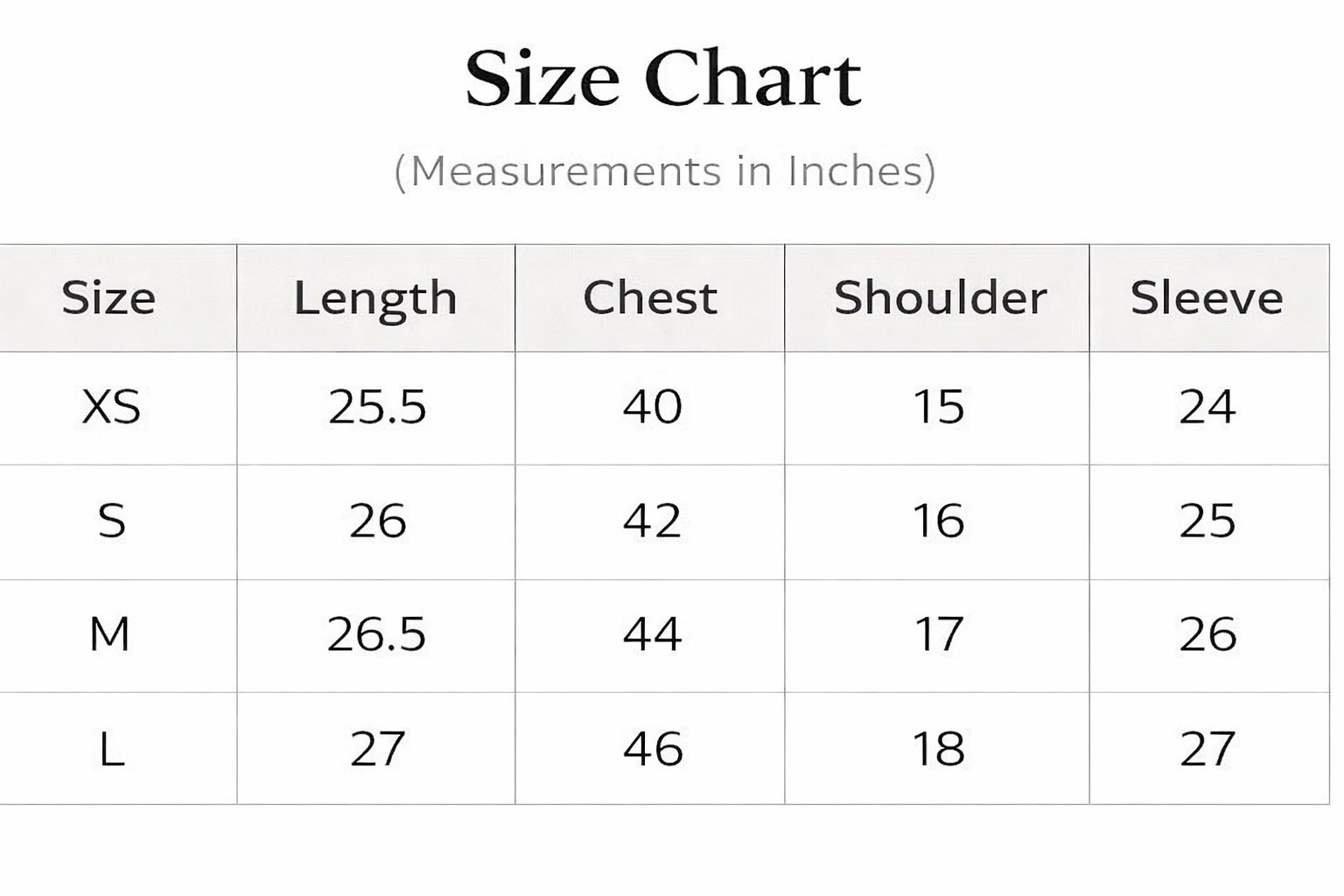 Size chart